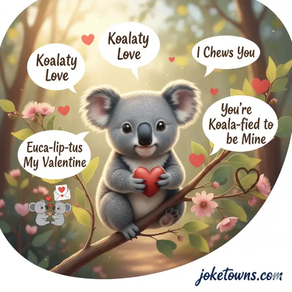 Koala Valentines Day puns mix romance with humor for seasonal sharing. These lines feel festive and friendly.