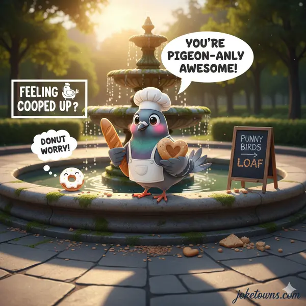 Pigeon Puns Jokes to Brighten Your Day with Feathered Fun are here to lift your spirits and add a feathered twist to your laughter! Our platform offers the latest and most creative Pigeon Puns Jokes to Brighten Your Day with Feathered Fun, perfect for sharing with friends, family, or even your quirky coworker. Whether you enjoy witty wordplay or cute bird-themed humor, these Pigeon Puns Jokes to Brighten Your Day with Feathered Fun are designed to make everyone smile.
