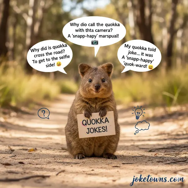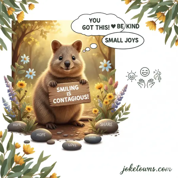 These cute quokka Jokes focus on joy, positivity and the famous quokka smile. They feel good moments and lighthearted jokes that lift moods fast.
