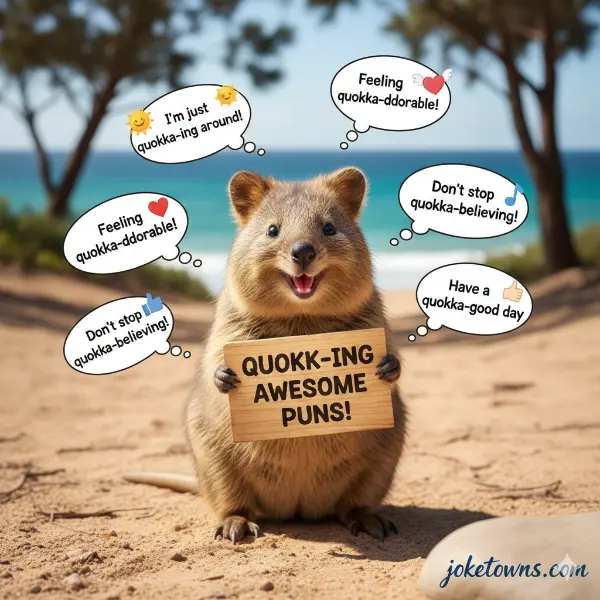 These short quokka puns deliver quick laughs that work perfectly for text comments and captions. They keep humor clean and punchy.