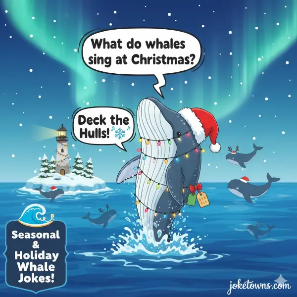 • Whale Christmas jokes spread cheer.