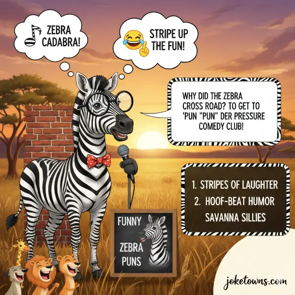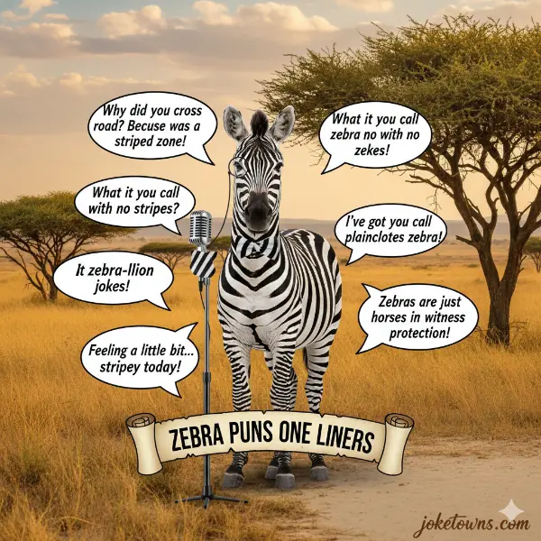 Zebra puns are more than just jokes. They combine wit, creativity, and charm to brighten your day, entertain friends, and make captions pop on social media. From cute zebra Humor to stripe tastically funny wordplay, there is a pun for every moment. Copy your favorite jokes easily and spread smiles with these un-foal-gettable striped quips. Laugh, share, and enjoy the wild and free spirit of zebras in every pun.